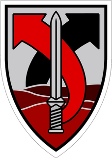 חרב חוצה את המרכז ויוצאת אל מעל הוואדי, מבטאת את ייעודה ההתקפי של האוגדה
