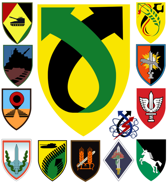 חצי האוגדה עשויים פלדה מסמלים את עברה כאוגדת שריון